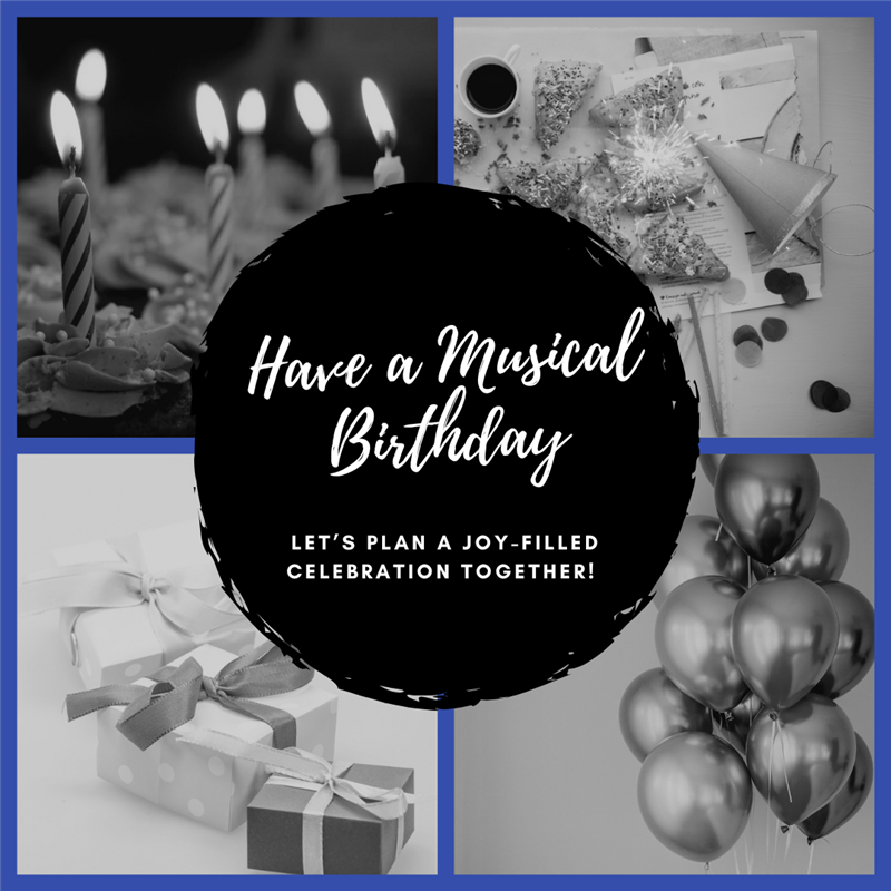 Let's create a musical birthday party for your child where everyone gets to sing, dance, play and celebrate! Who's invited? Parents and grandparents, aunts and uncles, friends and neighbors, and all those who love your child! We'll all sing and dance. We'll all move and groove. Kids and grownups together will join in song and dance, playing child-friendly instruments that will lead up to a sweet "Happy Birthday" finale. Together we'll play, laugh, sing, and honor this special day in a very special way! It's a wonderful way to pull your party together.